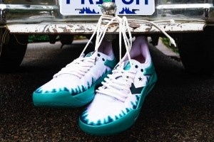 這雙Converse BB Trilliant PE設(shè)計(jì)靈感來(lái)源于他的家鄉(xiāng)俄勒岡州。俄勒岡州有“玫瑰之州”的昵稱,州花就是玫瑰,呼應(yīng)鞋墊元素,同時(shí)右腳鞋墊上還有他的個(gè)人Logo。而常綠針葉林,是俄勒岡州的代表性樹種之一,也呼應(yīng)鞋面的樹紋圖案。