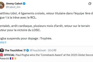 【相關(guān)新聞】今年已出戰(zhàn)30分鐘??官方:博格巴獲得2025環(huán)足獎(jiǎng)最佳復(fù)出獎(jiǎng)
