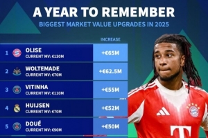 體育資訊12月30日訊 2025年即將結(jié)束,《轉(zhuǎn)會市場》也統(tǒng)計了本年度身價上漲幅度最大的球員,奧利塞力壓沃爾特馬德居首。
