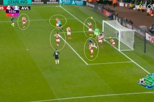 阿森納4-1阿斯頓維拉,槍手補(bǔ)時(shí)丟球,蘇維門迪、特羅薩德等人很懊惱