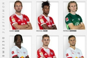 體育資訊12月31日訊 德甲官方評選出12月最佳球員候選名單,其中凱恩、奧利塞、斯坦尼西奇等三位拜仁球員在列,具體如下: