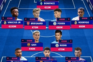 體育資訊1月1日訊 2025年已經(jīng)過去,《轉(zhuǎn)會市場》也統(tǒng)計了本年度身價下跌最多的一套陣容,巴薩、阿森納、曼城、皇馬各2將。