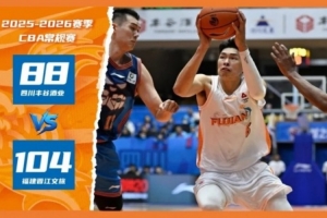 2025-2026賽季CBA常規(guī)賽第九輪今晚打響,福建晉江文旅男籃奔赴客場挑戰(zhàn)四川豐谷酒業(yè)男籃。福建晉江文旅男籃在首節(jié)膠著后逐步掌控局勢,憑借隊長鄒陽的爆發(fā)與全隊復蘇的外線手感(全場三分球33中19),最終以104-88大勝對手,取得新年首勝!四節(jié)比分分別是:24-24,31-21,22-18,27-25(福建晉江文旅男籃在前)。