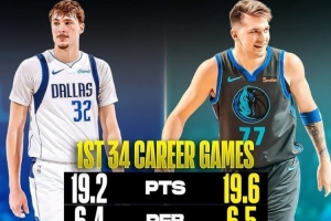美媒對比了弗拉格和東契奇在菜鳥賽季球隊(duì)前35場比賽的數(shù)據(jù)對比,巧合的是兩人都在35場比賽里出戰(zhàn)34場,數(shù)據(jù)如下: