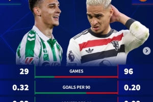體育資訊9月25日訊 在歐聯(lián)杯貝蒂斯2-2戰(zhàn)平諾丁漢森林的比賽中,安東尼傳射建功。德轉也對比了安東尼在效力曼聯(lián)以及貝蒂斯期間各項賽事數(shù)據(jù)情況,具體如下:
