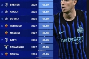 體育資訊9月26日訊 德國(guó)轉(zhuǎn)會(huì)市場(chǎng)盤點(diǎn)了意甲中衛(wèi)稅前薪資情況,國(guó)米的巴斯托尼以1020萬(wàn)年薪居首,尤文的布雷默以930萬(wàn)歐元年薪位居次席。值得一提的是,國(guó)米新援阿坎吉以880萬(wàn)歐元位居第三位。