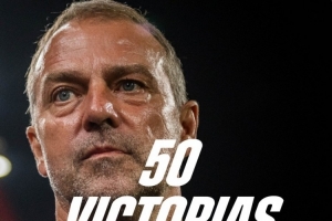 此役是弗里克執(zhí)教巴薩的第50場勝利,巴薩官方社媒曬出海報,對他表示祝賀。