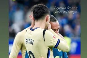 佩德里社媒曬出照片,配文:“場上場下都是傳奇?!?/p>