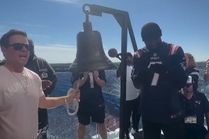 布朗還和來自波士頓的好萊塢影星馬克-沃爾伯格一起為比賽進行了敲鐘儀式。