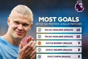 數(shù)據(jù)顯示,哈蘭德本賽季前6輪攻入8個英超進球,這一數(shù)據(jù)可以排進英超單賽季前六輪射手榜的前9。距離哈蘭德自己在2022/23和2024/25賽季創(chuàng)下的6輪10球尚有差距。哈蘭德加盟曼城以來4個賽季前六輪的進球數(shù)分別為:10、8、10、8。