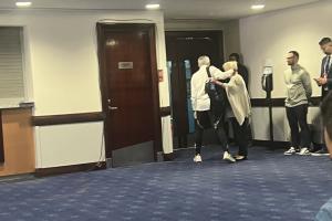 在歐冠新聞發(fā)布會結束后,穆里尼奧與切爾西的新聞官特蕾莎-康妮莉擁抱,贏得了在場其他人的掌聲。