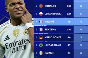 體育資訊10月1日訊 在本輪歐冠,皇馬5-0大勝阿拉木圖凱拉特,姆巴佩上演帽子戲法,以下為歐冠歷史上演帽子戲法次數(shù)榜: