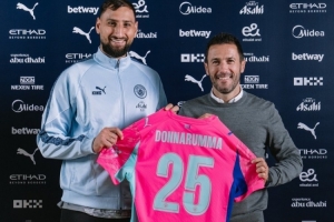 體育資訊9月12日訊 曼城官方更新社媒動(dòng)態(tài),曬出新援門將多納魯馬的亮相照片。