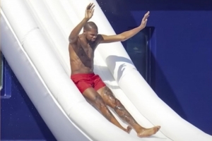 女主持人:“休賽期我沒看到任何游艇滑梯的狗仔照。我有點失望?!?/p>