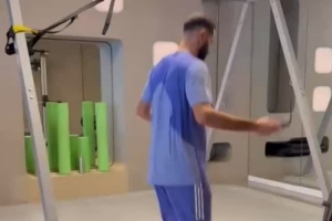 體育資訊10月3日訊 本澤馬更新社媒動態(tài),曬出在健身房內(nèi)跳繩的視頻。