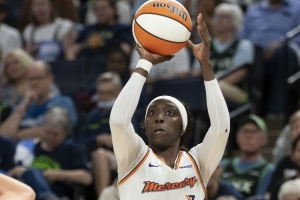 體育資訊10月4日訊 WNBA總決賽G1,菲尼克斯水星對陣?yán)咕S加斯王牌,半場結(jié)束時,水星50比45領(lǐng)先。