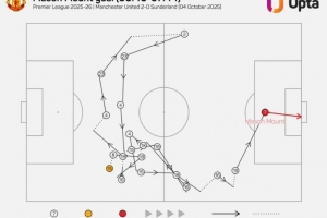 據(jù)統(tǒng)計,芒特進球前經(jīng)過18次傳球,這是本賽季英超進球中最多,而曼聯(lián)上一次進球前有如此多傳球還在2023年9月(B費進球)。