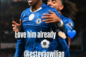 切爾西名宿特里社媒曬出埃斯特旺的照片,配文:“已經愛上他了,庫庫雷利亞的助攻太精彩了?!?/p>