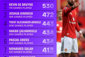 體育資訊10月10日訊 據(jù)Squawka統(tǒng)計(jì),2019-2020賽季以來,B費(fèi)創(chuàng)造557次機(jī)會(huì),五大聯(lián)賽同期最多。