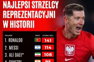 體育資訊10月13日訊 世預賽歐洲區(qū)小組賽G組第8輪,波蘭2-0客勝立陶宛,萊萬破門,收獲國家隊生涯第87球,在國家隊歷史射手榜上排名第7。