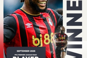 體育資訊10月13日訊 PFA(英格蘭職業(yè)球員工會,Professional Footballers' Association)官方宣布,伯恩茅斯邊鋒塞梅尼奧當選球迷票選英超9月最佳球員。