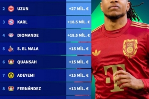8、埃茲奎爾-費(fèi)爾南德斯(勒沃庫森):+1300萬歐元