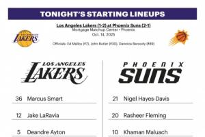 體育資訊10月15日訊 今日10點(diǎn)NBA季前賽,湖人將在客場挑戰(zhàn)太陽。