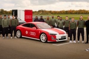 在車輛交付后,球員們在奧迪駕駛體驗的動力場和操控賽道上展示了他們的駕駛技巧。奧迪RS e-tron GT讓所有人興奮不已。