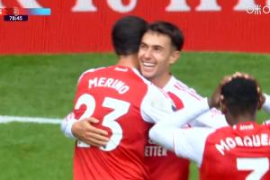體育資訊09月13日訊 英超第4輪,阿森納vs諾丁漢森林。比賽第79分鐘,特羅薩德剛剛登場就送助攻,蘇維門迪頭球破門,本場雙響!阿森納3-0領先。