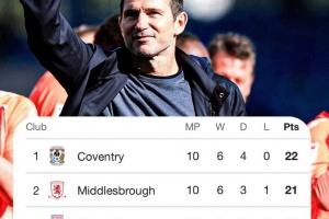 考文垂本賽季前10場英冠6勝4平保持不敗,在積分榜上以1分優(yōu)勢領(lǐng)先米德爾斯堡位居榜首,球隊(duì)10場比賽打進(jìn)29球(聯(lián)賽最多),只丟7球(已經(jīng)連續(xù)5場零封)。