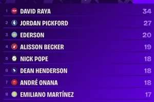 體育資訊10月19日訊 據(jù)統(tǒng)計(jì),阿森納門將拉亞自2023/24賽季加盟球隊(duì)以來(lái),在英超聯(lián)賽中的表現(xiàn)極具統(tǒng)治力。
