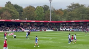 現(xiàn)場視頻顯示,在這場英乙聯(lián)賽中,一群男子沖入球場,導(dǎo)致比賽暫停。他們似乎穿著背后印有“加里-內(nèi)維爾是叛徒”的白色連帽衫,并手持英格蘭國旗。其中一名嫌疑人還試圖將一面英格蘭國旗插在球場中央。安保人員迅速將他們拖離球場,并在比賽暫停期間處理了此事。