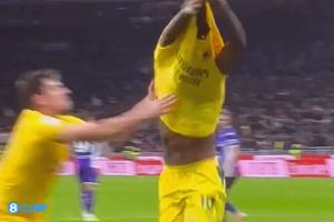 第86分鐘萊奧點(diǎn)球破門助米蘭反超,之后他想脫衣慶祝,被加比亞攔截。
