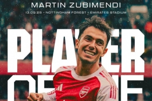 體育資訊9月14日訊 阿森納官方宣布,蘇維門迪當(dāng)選3-0諾丁漢森林的隊(duì)內(nèi)最佳球員。