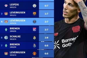 體育資訊10月22日訊 在本輪歐冠,勒沃庫(kù)森2-7慘敗給巴黎。德轉(zhuǎn)也盤點(diǎn)了德甲球隊(duì)在歐冠歷史最大比分失利榜單,具體如下: