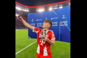 值得一提的是,這是他生涯首次在歐冠首發(fā),打進(jìn)了歐冠處子球、成為拜仁隊(duì)史最年輕歐冠進(jìn)球者,也在首次在賽后被歐冠官方評為全場最佳球員。