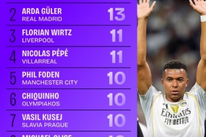 歐冠創(chuàng)造機(jī)會(huì)排行榜:姆巴佩16次排第1、居萊爾第2、維爾茨第3
