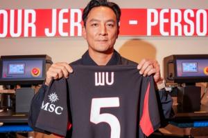 體育資訊10月24日訊 AC米蘭官博更新動(dòng)態(tài),曬出影星吳彥祖與米蘭球衣的合照,球衣印號(hào)是5號(hào)的“WU”。