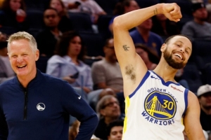 當戈登射中第十個三分球,達成了約基奇的三雙時,庫里毫無邏輯、極不合理的34尺超遠射,120平。拖進加時。