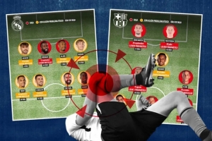 體育資訊10月25日訊 據(jù)《馬卡報(bào)》統(tǒng)計(jì),皇馬和巴薩兩隊(duì)共計(jì)有多達(dá)16名球員受到不同程度的身體問題困擾。其中,皇馬的呂迪格和阿拉巴,以及巴薩的特爾施特根、加維、萊萬、奧爾莫、拉菲尼亞和霍安-加西亞共八人已確定缺席。