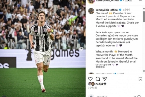 伊爾迪茲在社媒也曬出慶祝進球照片,配文寫道:“這是多棒的一個月!很榮幸當(dāng)選意甲8月最佳球員以及國家德比最佳,很感激大家對我的支持!”