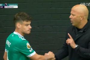 體育資訊09月14日訊 英超第4輪,利物浦客戰(zhàn)伯恩利,科爾克茲第38分鐘被換下,羅伯遜登場(chǎng),斯洛特在場(chǎng)邊向科爾克茲解釋理由。