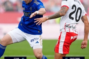本場比賽皇家奧維耶多在38分鐘利用點球先拔頭籌,隨后第58分鐘龍東破門擴(kuò)大領(lǐng)先優(yōu)勢;隨后場上風(fēng)云突變,赫羅納在第64分鐘、83分鐘以及90分鐘連進(jìn)三球,其中斯圖亞尼打進(jìn)兩粒點球,不過皇家奧維耶多在第97分鐘由卡爾莫完成絕平。