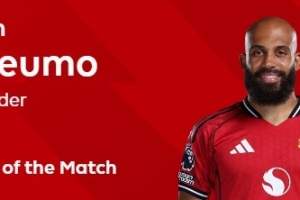 此役姆伯莫雙響建功!賽后球員當(dāng)選全場最佳球員。