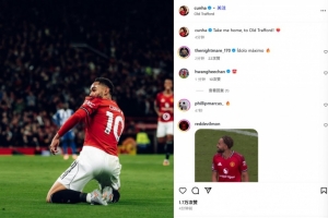 他也在賽后通過社媒曬出自己慶祝時親吻隊(duì)徽的照片,并配文:“帶我回家,來老特拉福德!”