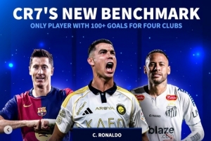 《轉(zhuǎn)會(huì)市場(chǎng)》統(tǒng)計(jì)顯示C羅也是唯一為4家俱樂部都能達(dá)成百球里程碑的球員: