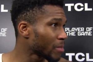 賽后,希臘球星揚(yáng)尼斯-阿德托昆博在接受采訪時(shí)眼里包含熱淚。