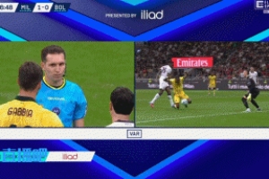 比賽第86分鐘,米蘭前鋒恩昆庫(kù)在禁區(qū)內(nèi)被博洛尼亞后衛(wèi)盧庫(kù)米推倒,恩昆庫(kù)起身后護(hù)球時(shí)和另一名博洛尼亞后衛(wèi)弗魯勒對(duì)抗時(shí)再次倒地。主裁判先是判罰點(diǎn)球,隨后VAR介入,主裁判觀看視頻回放后取消了點(diǎn)球,米蘭主帥阿萊格里因不滿判罰還吃到紅牌。
