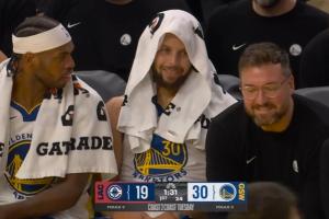 GIF-庫里看著哈登苦笑