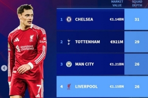 體育資訊10月30日訊 利物浦在本輪聯(lián)賽杯做出大輪換最終主場0-3完敗水晶宮,斯洛特在賽后抱怨球隊人手不足?!掇D(zhuǎn)會市場》則統(tǒng)計了BIG6的陣容深度情況。
